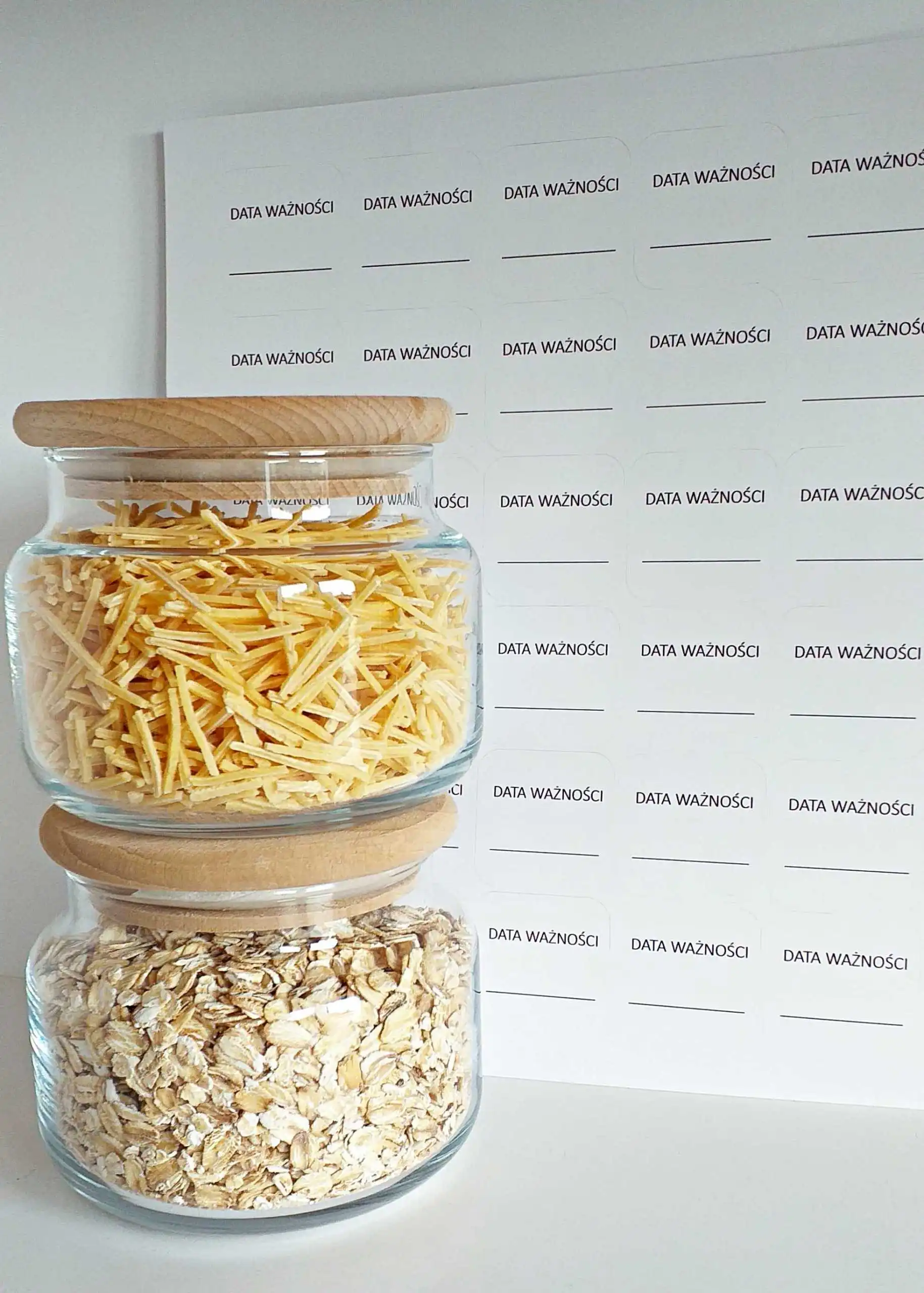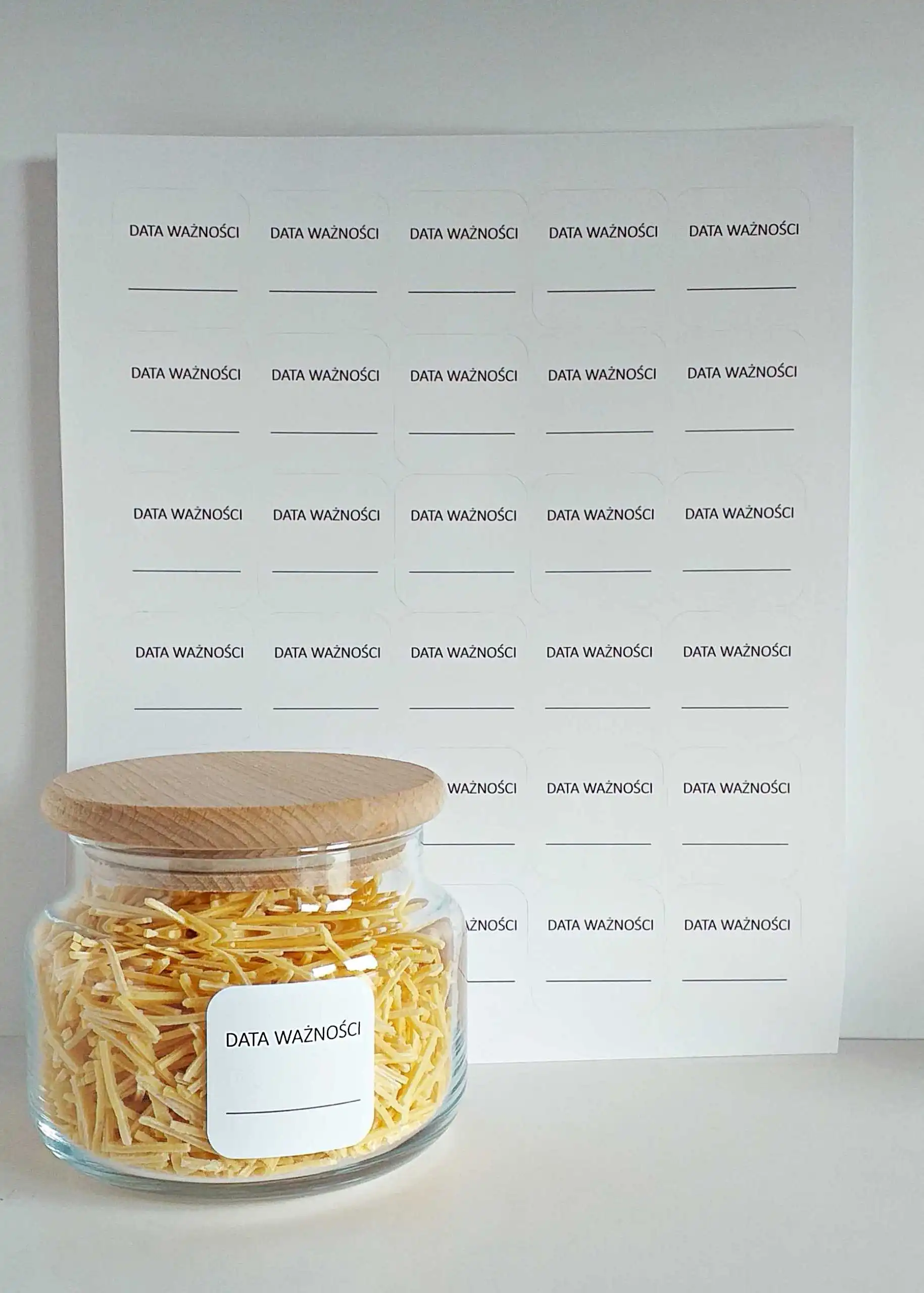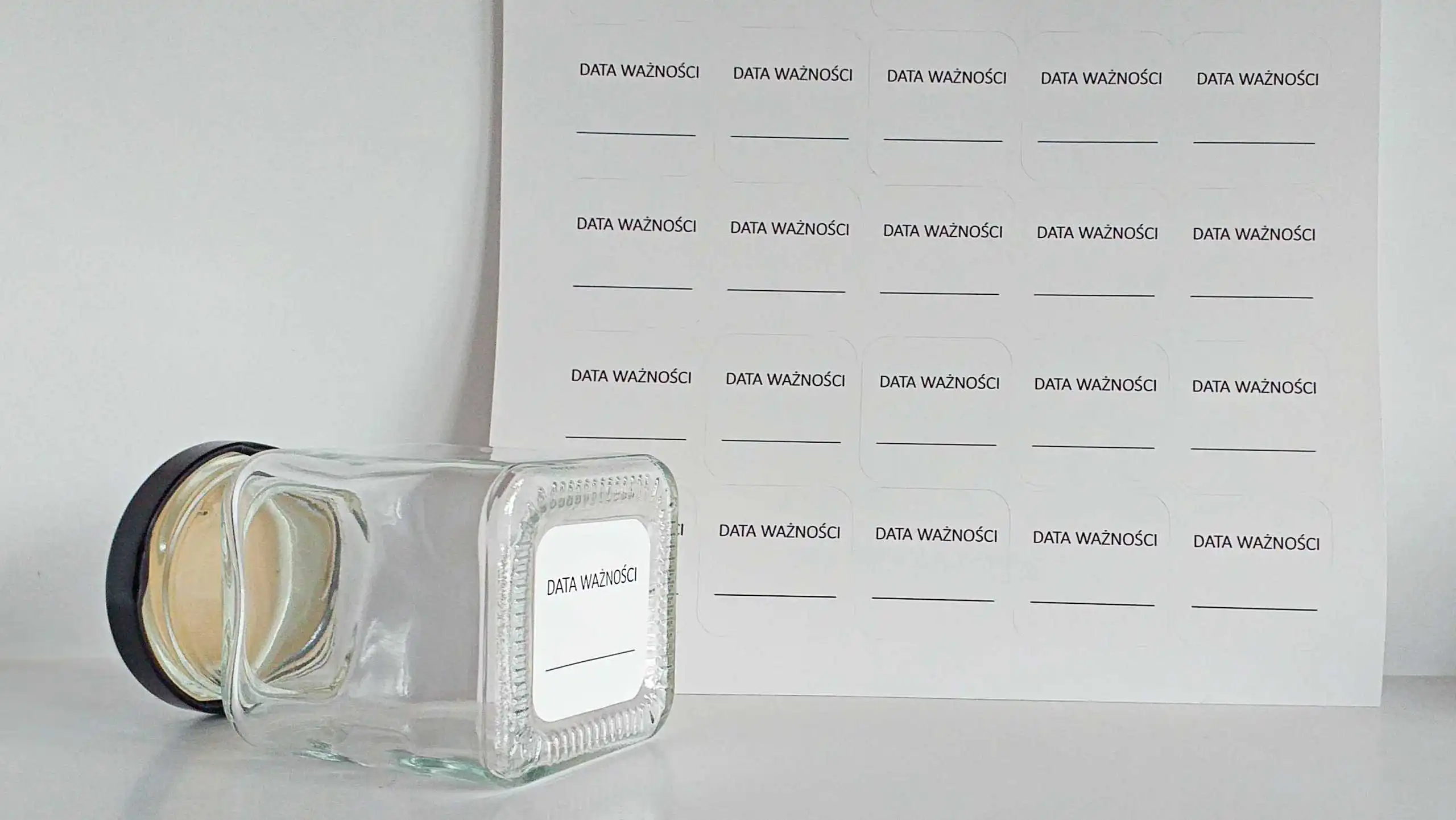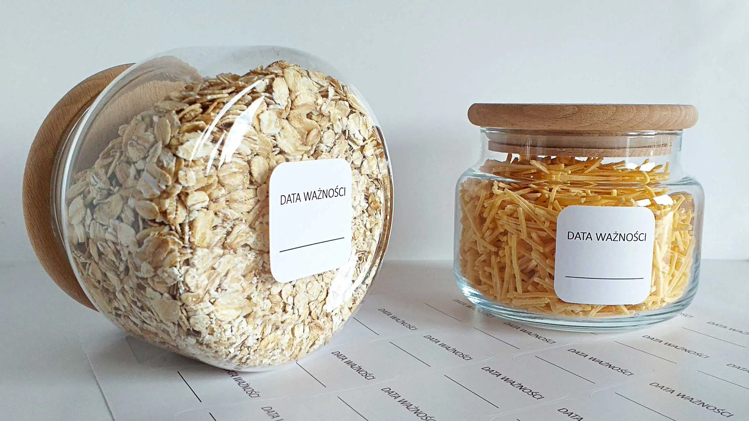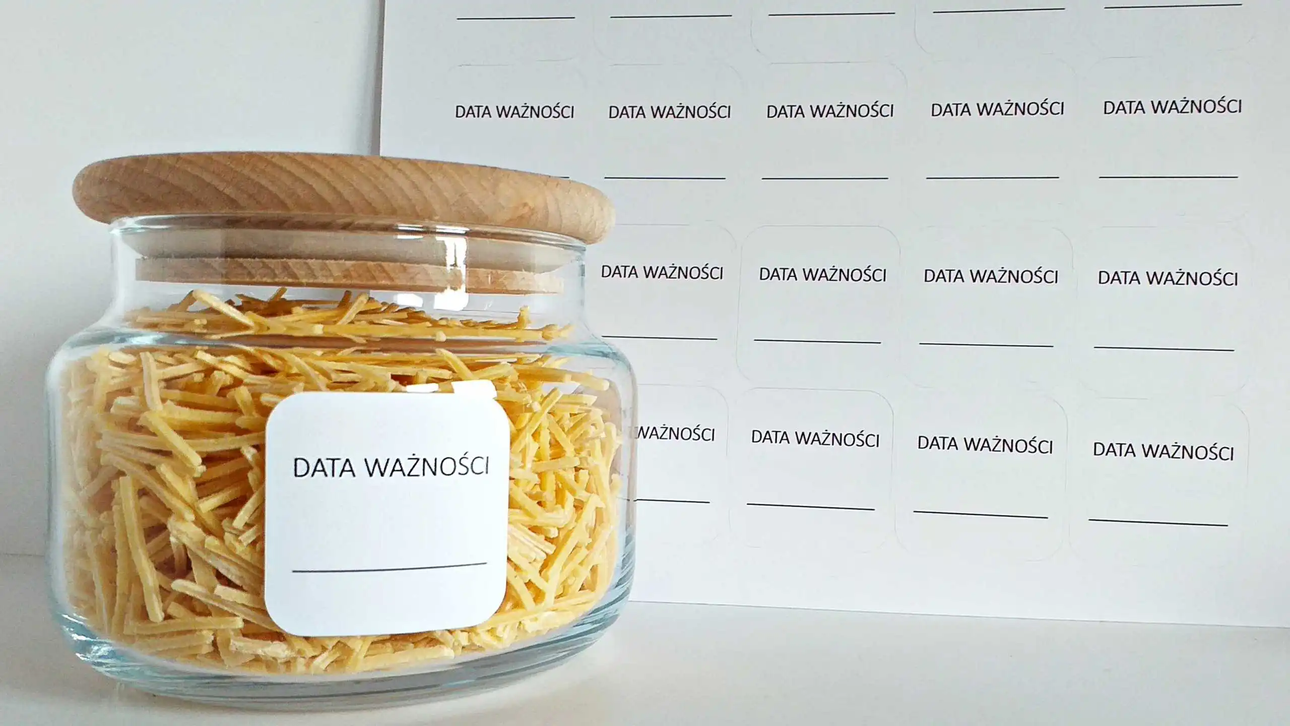 Naklejki z napisem „data ważności” to prosty i skuteczny sposób na oznaczanie żywności w kuchni. Dzięki nim łatwo zapiszesz termin przydatności lub datę przygotowania i szybko sprawdzisz, czy produkt nadal nadaje się do spożycia.