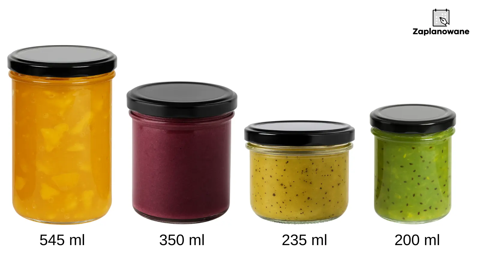 Na jednym ze zdjęć prezentujemy wszystkie rozmiary słoików na przetwory z tej serii. Dzięki temu łatwo ocenisz, który wariant najlepiej odpowiada Twoim potrzebom – od mniejszych słoiczków na przyprawy, po większe do przechowywanie produktów.