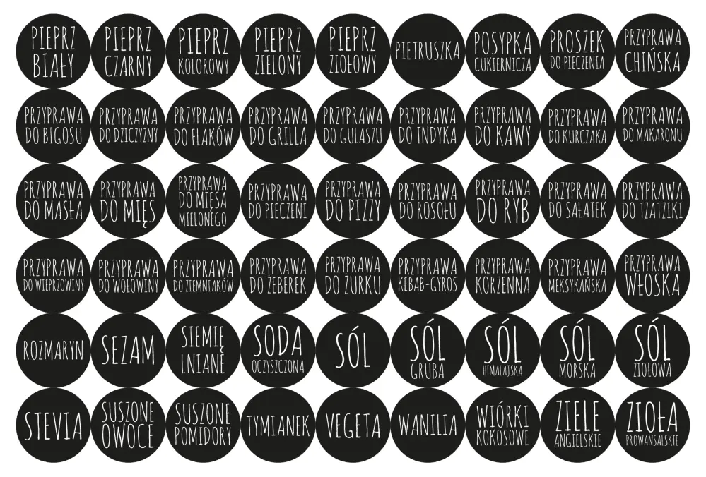 ✔️ 108 × naklejki na przyprawy (średnica 3,5 cm)